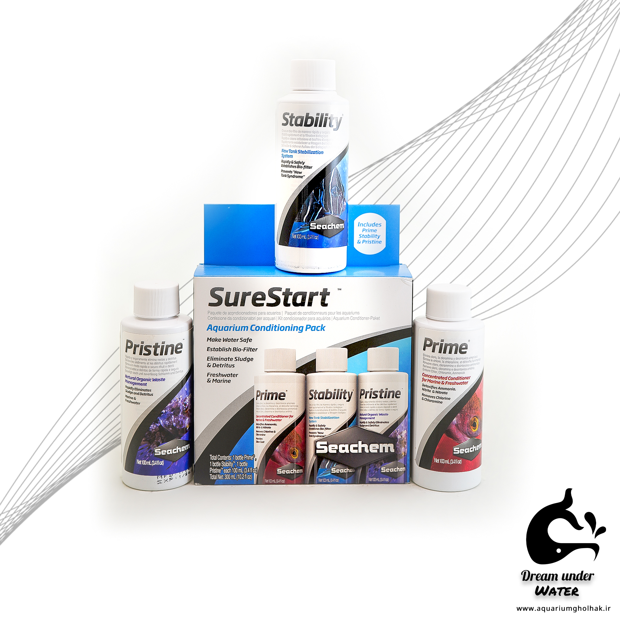 | محتوای بسته | Seachem Prime (50ml), Stability (50ml), Pristine (50ml) |
